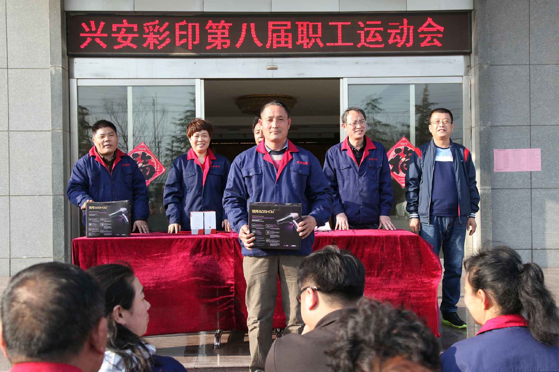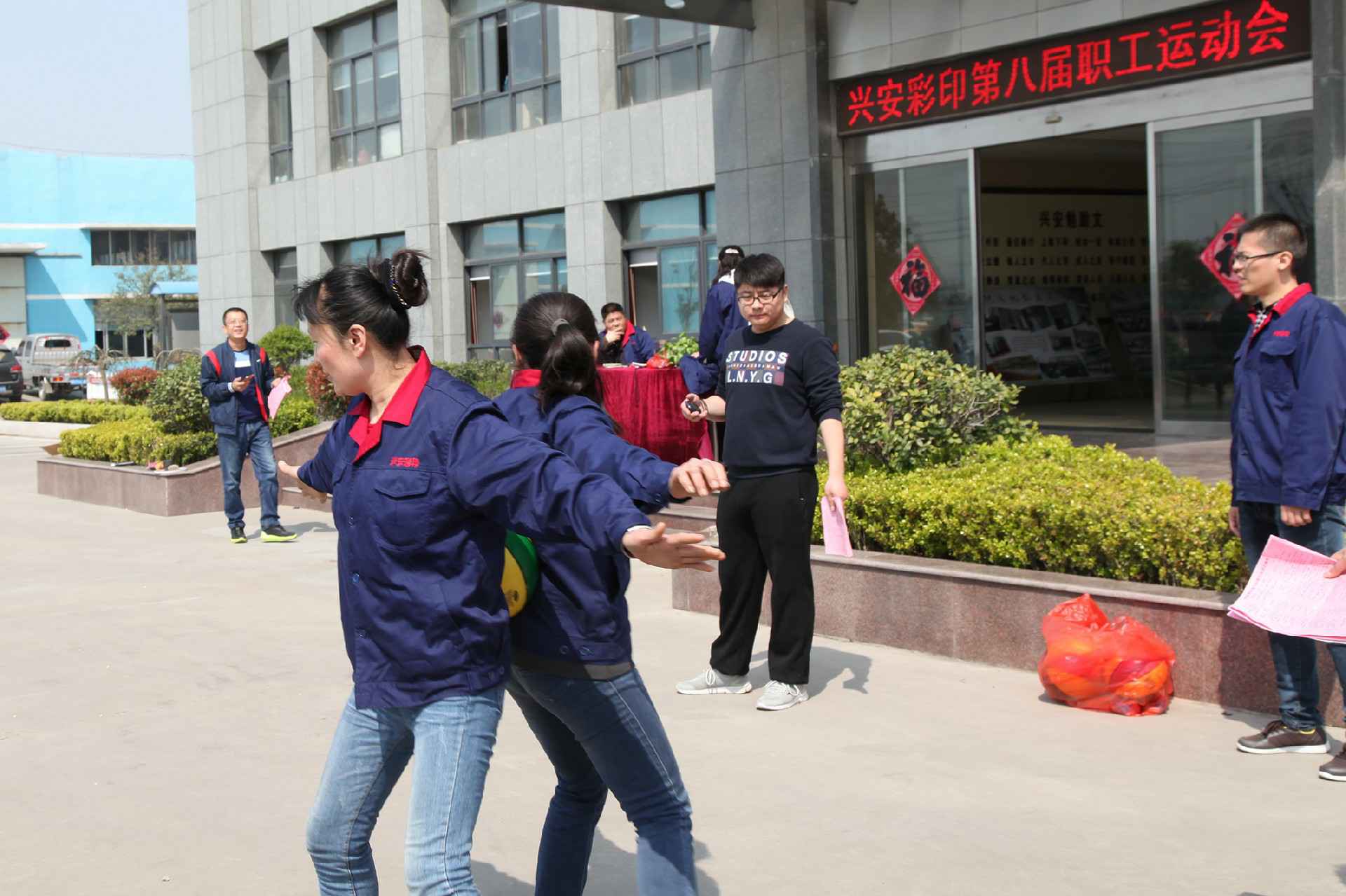 2017年4月2日上午,万利官网-万利(中国)一站式服务官网第八届职工运动会隆重举行,本次运动会共设男女拔河、盲人敲锣、投沙包、抛绣球、心有灵犀、心心相印、摸石过河、穿衣接力、同舟共济、企鹅漫步、仙人指路、踢毽子、踢气球、羽毛球、面部肌肉跳舞及“造反”运动等16大项,参赛人员400多人次,此次运动会以娱乐节目为主开的比较成功,充分体现了兴安大家庭的和谐团结。